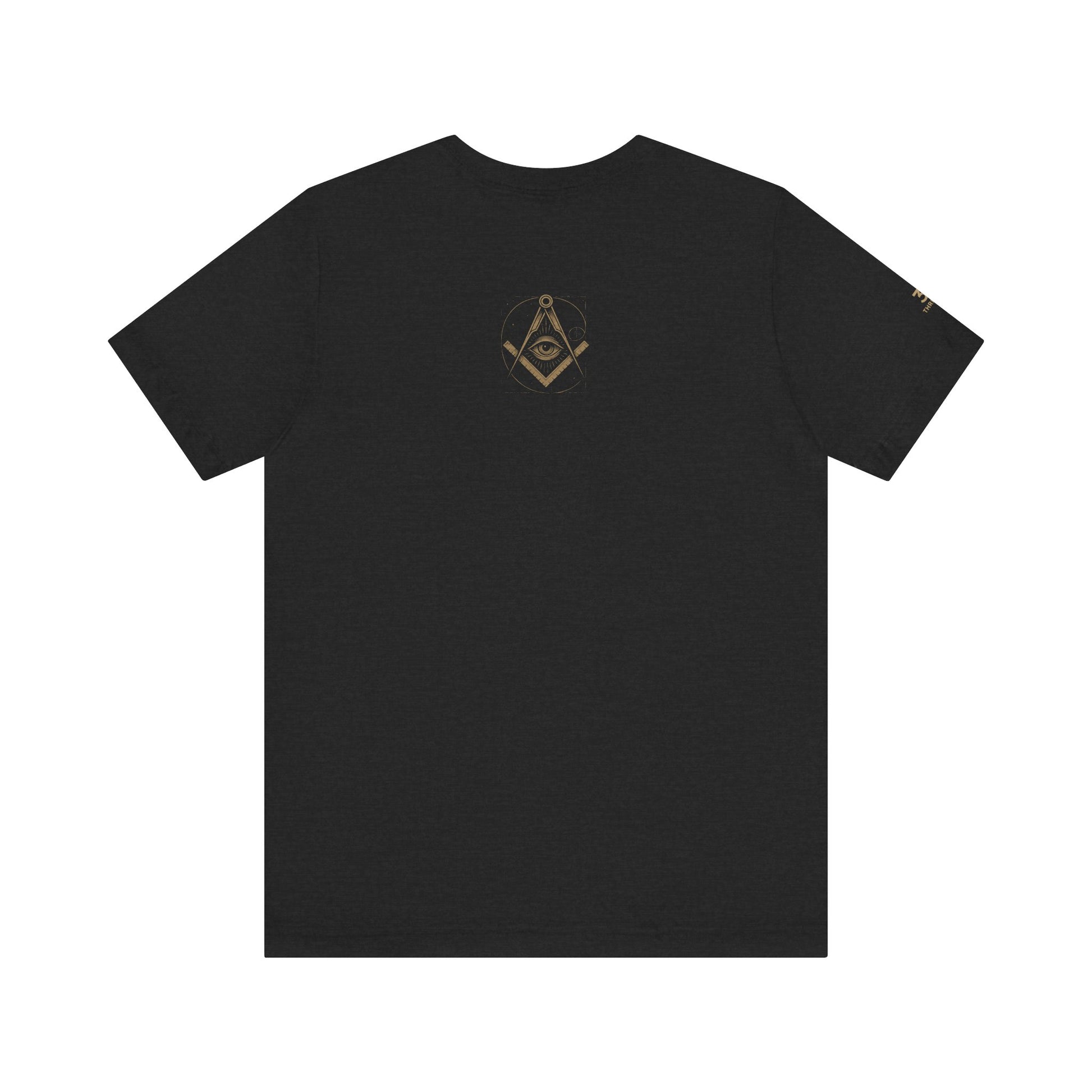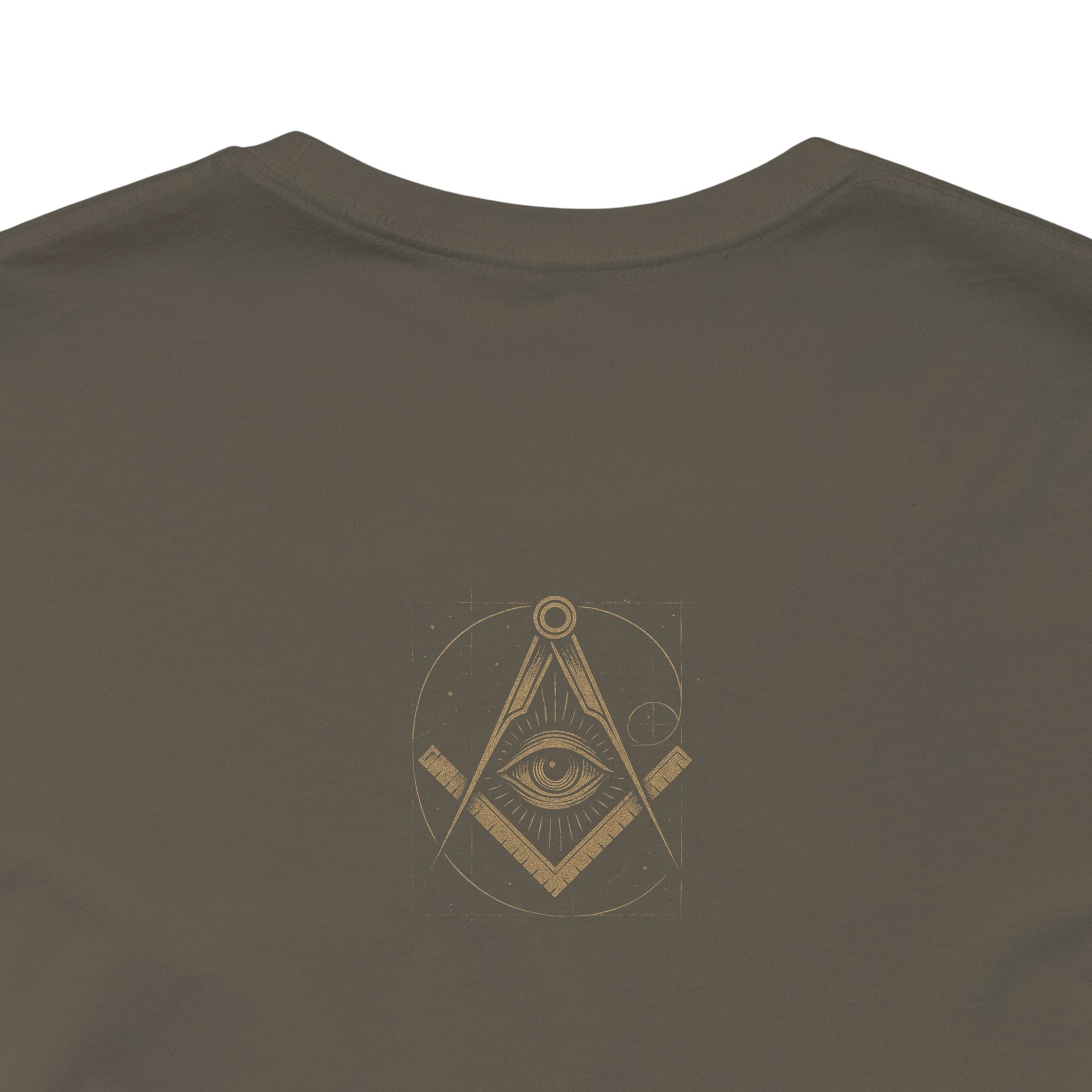 This T-Shirt features a bold design of the All Seeing Eye Square and Compass, giving off an mysterious and intriguing vibe. It is perfect for those interested in mysticism and symbolism, making it a great addition to a casual wardrobe. Ideal for Freemasons.