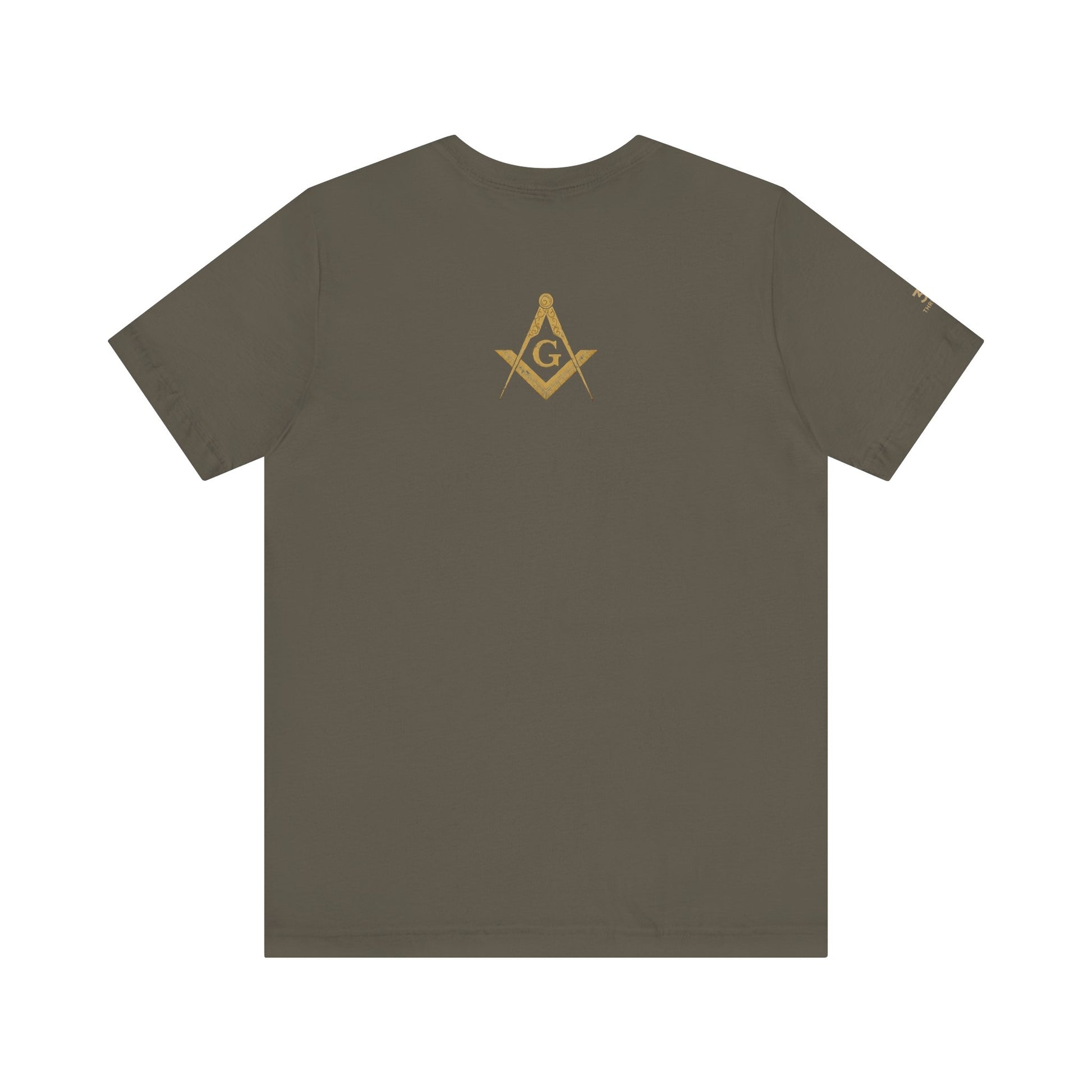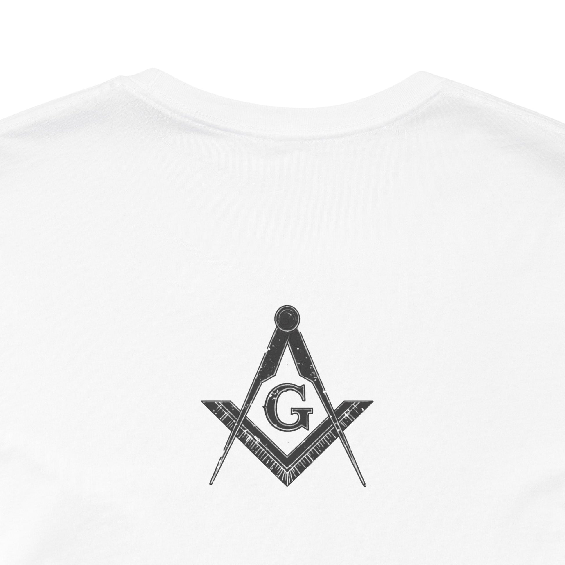 A short sleeve tee with a small square and compass design on the back. Perfect for casual wear and layering, this t-shirt offers a classic retail fit and breathable fabric. Made with 100% Airlume combed and ring-spun cotton by Bella+Canvas in a sustainable and humane manner.